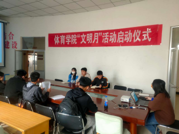 启动仪式上,紧紧围绕“共建文明体院,共享体院文明”的主题,从文明课堂、文明宿舍、绿色校园、指尖文明四个方面介绍了文明月活动的主要内容,安排大一、大二七个班级每个班组织举办一个主题活动。3月11日-3月16日期间,大一、大二七个班都以班级为单位举办了文明月启动仪式。