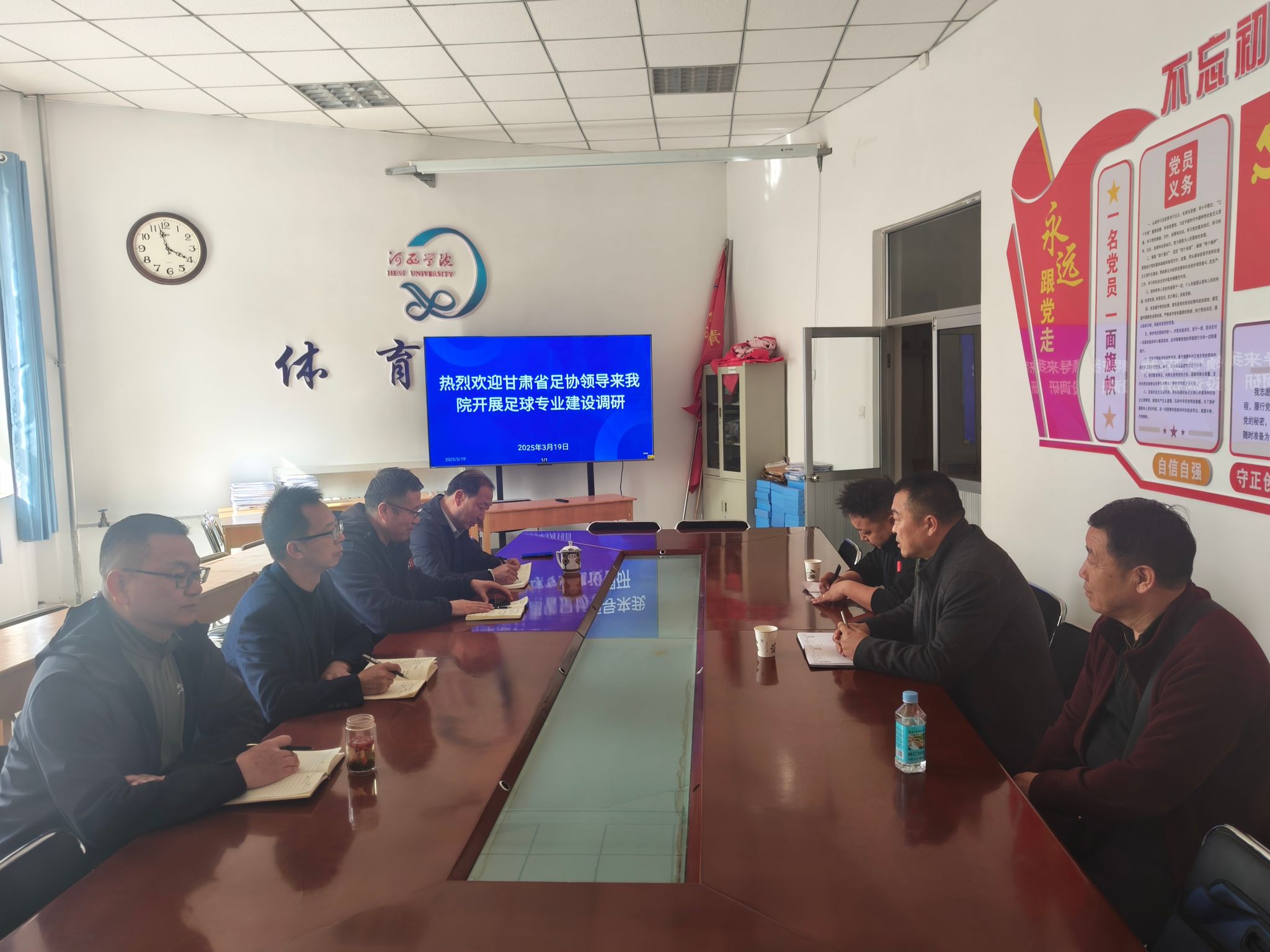 为积极推进足球运动专业建设,促进双方合作交流,共同提高足球运动专业建设与人才培养水平,3月19日,甘肃省足球运动协会秘书长张新一行3人来公司调研交流,公司领导班子成员及足球专业教师参加调研活动。