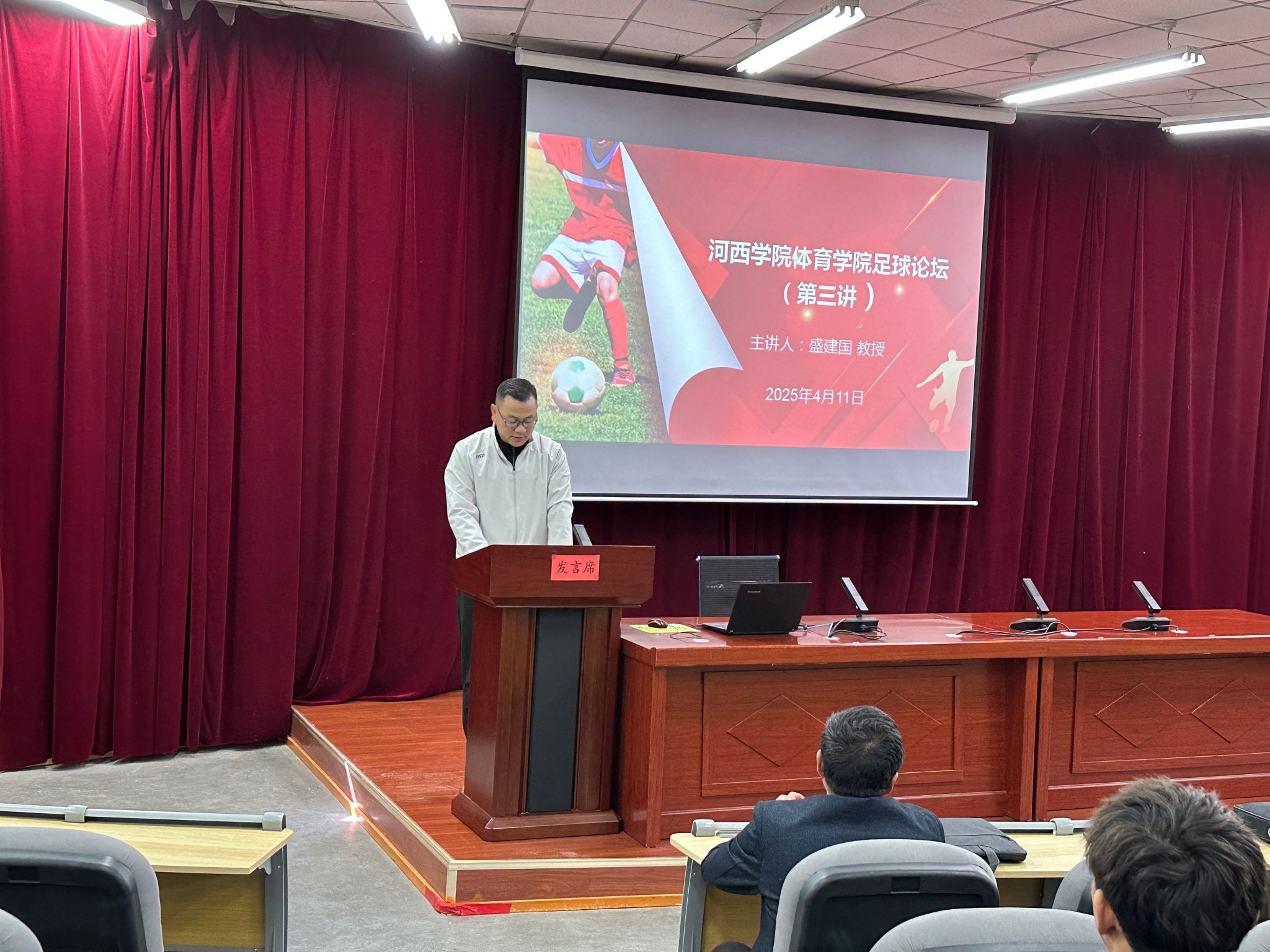 为深入贯彻落实国家校园足球发展战略,扎实推进学科专业建设,2025年4月11日,公司举·办“足球论坛”第三讲,盛建国教授主讲。