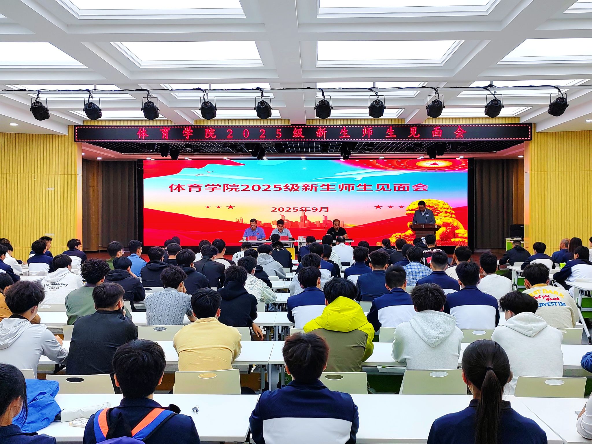 2025年9月4日下午2:30,2025级新生师生见面会在团委四楼多功能厅隆重举行。会上,公司领导依次介绍了公司基本情况、团队队伍、专业课程建设、场馆及体育竞赛等相关情况。鼓励新生们在新的学习环境中努力拼搏,追求卓越。